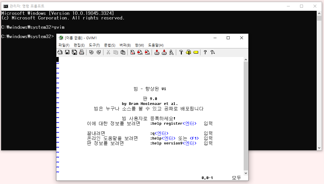 4. cmd (관리자 모드) gvim 입력 시 새로운 gvim 화면 출력 / vim 입력 시에도 vim 화면 출력